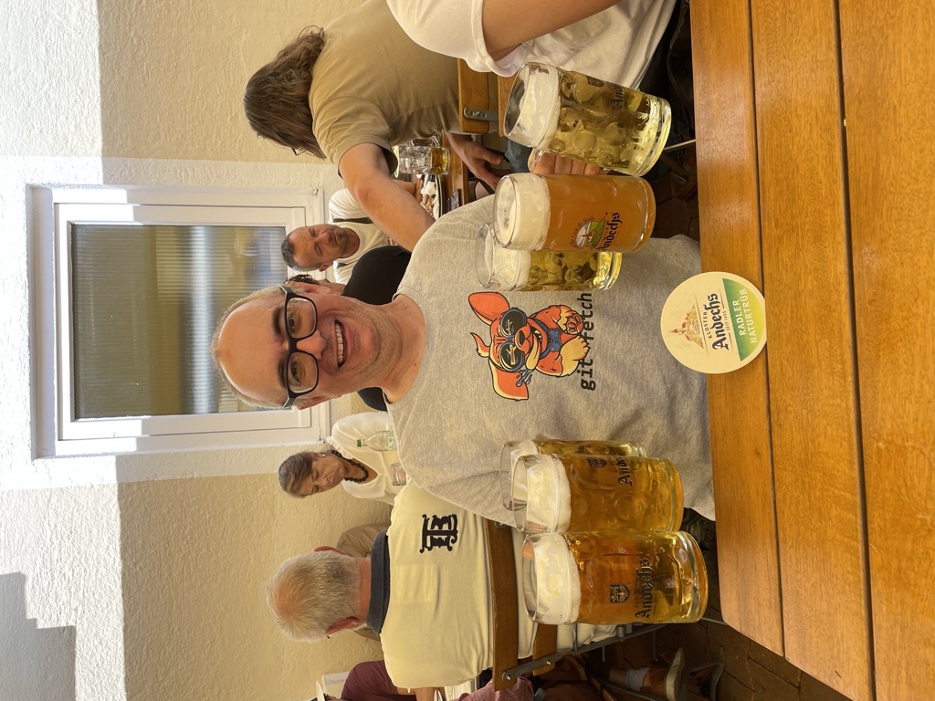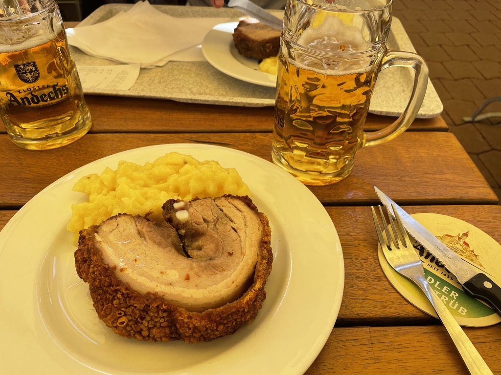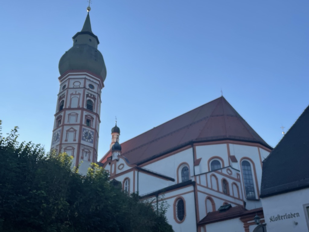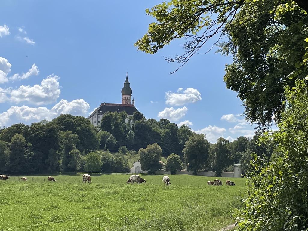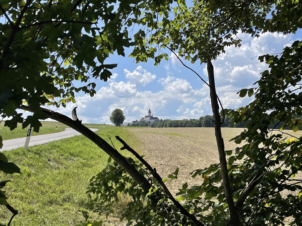 On one of the days after the cycle I had always planned to go to Andechs, so on Sunday we met up with Alistair, a friend of Colin & Lizelle's, and we headed out on the train. We got to a train stop close by and did a pleasant walk to Andechs. Was super nice to walk through the forest and just take it easy. After a while we saw the Monastery appear on a hill.