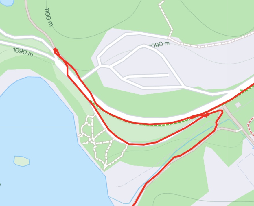 I was coming from the line at top right then went up the one Mountain Bike looking path and backtracked.
