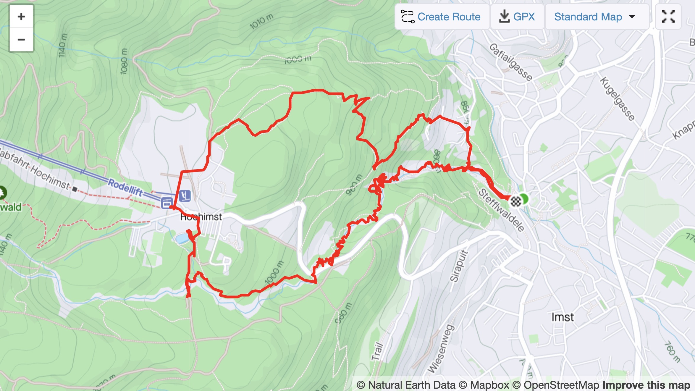 After looking around briefly up top I headed back towards Imst. I went a different route down which the tourist office recommended for something different. It was more forest trails vs the canyon like I had come up through. Enjoyed the walk back down. I had turned my phone into low power mode to save battery on the way down and so I've found out after that, it blocks non system things using the GPS and other aspects so the stats were a bit wrong on Strava for the hike, oh well, no biggie.