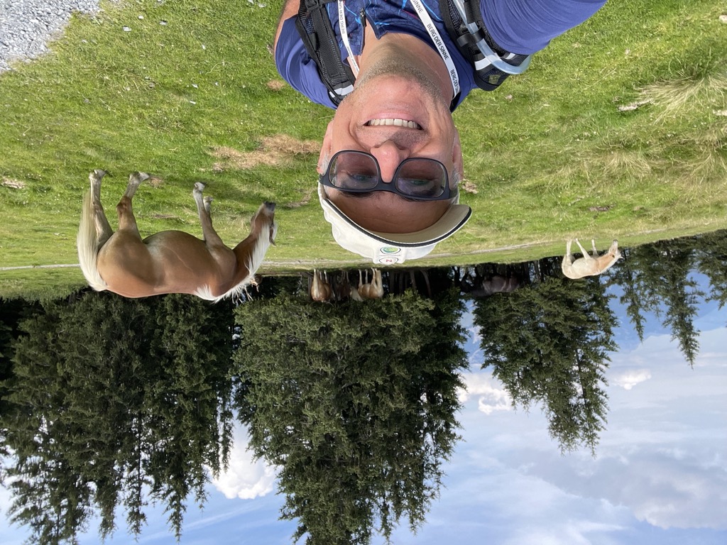 I had a pear I had taken from breakfast later in the day wasn't going to eat as got a bit bruised, so have one of the wild horses a nice treat meal.