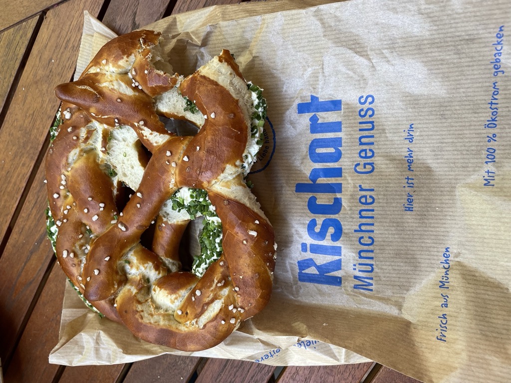 Rischart Pretzel with Cream Cheese & Chives for breakfast
