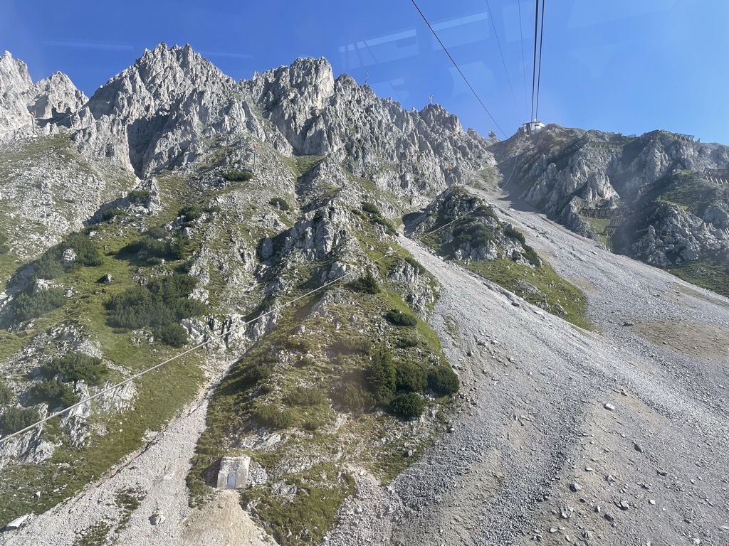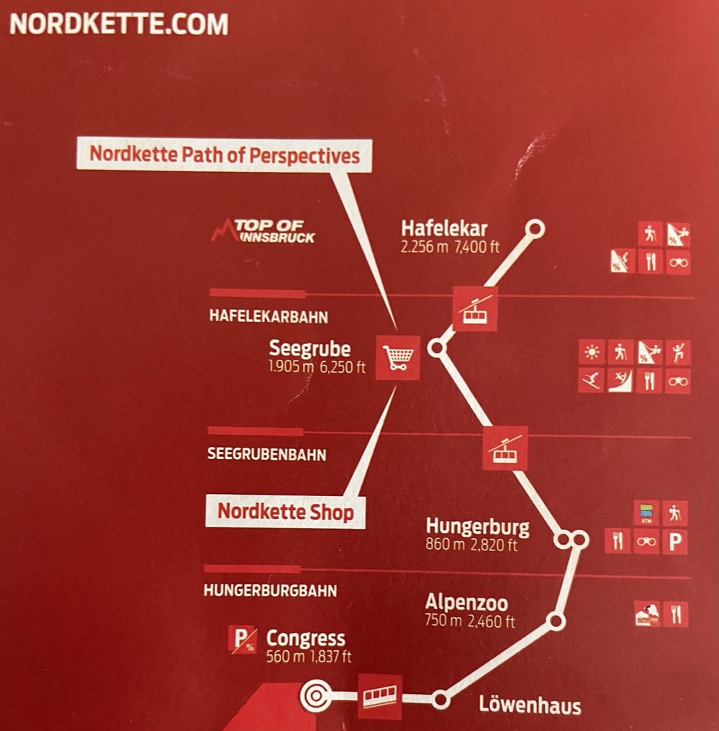 You take the tram/funicular for the 1st bit of the trip to Hungerburg. Then took the first cable car to Seegrube and then another one up to Hafelekar which was the very top stop. Did the normal cable car photo thing, this one was bigger and fuller so I had to make sure I got a good window view place.