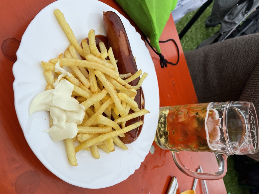 The Sommerfest was fantastic to see. Was a traditional German band playing and dancers and all sorts with a beer garden and stuff setup. I had bought food for dinner but thought I could easily have that for lunch the next day and have something there which I did. had a really nice curry worst and pommes (chips) for dinner and had a good few beers, I think I had Radlers actually.